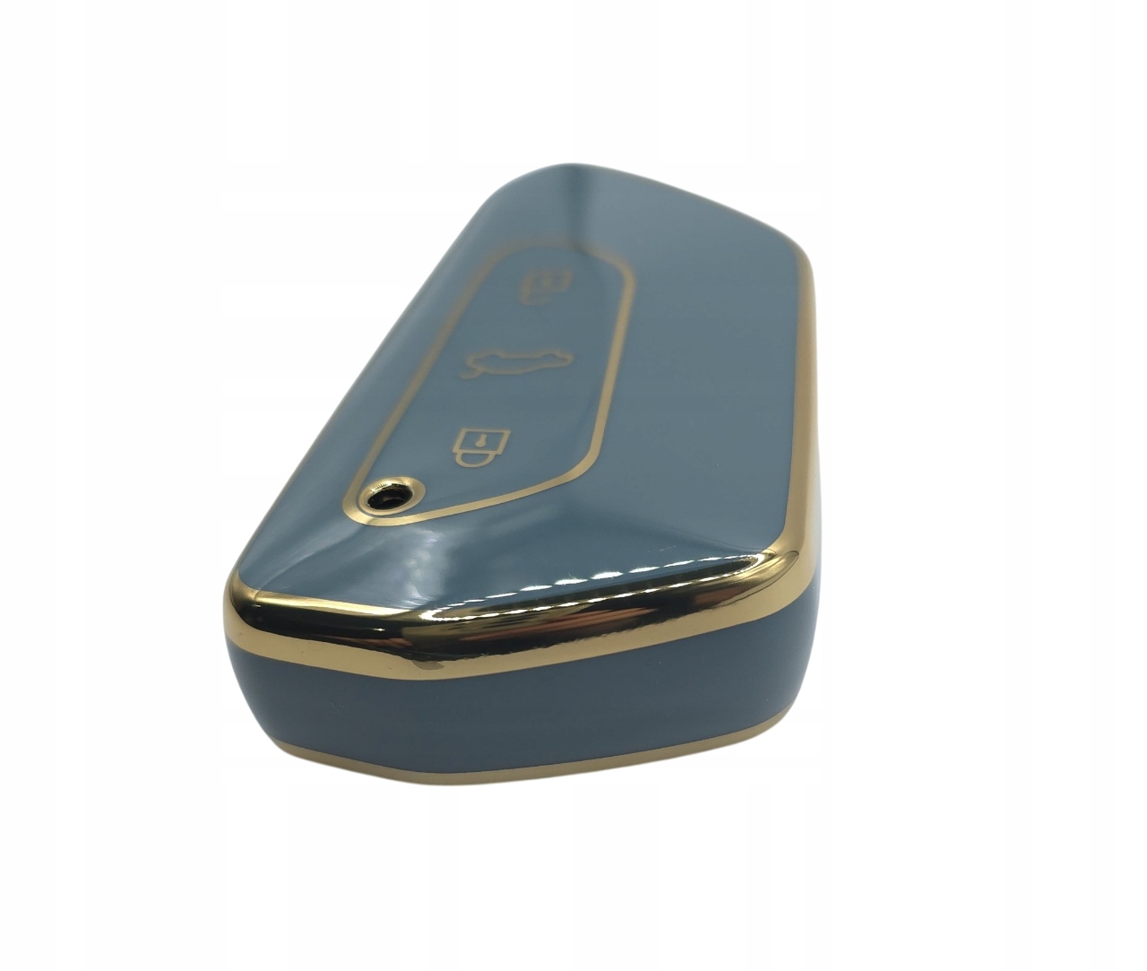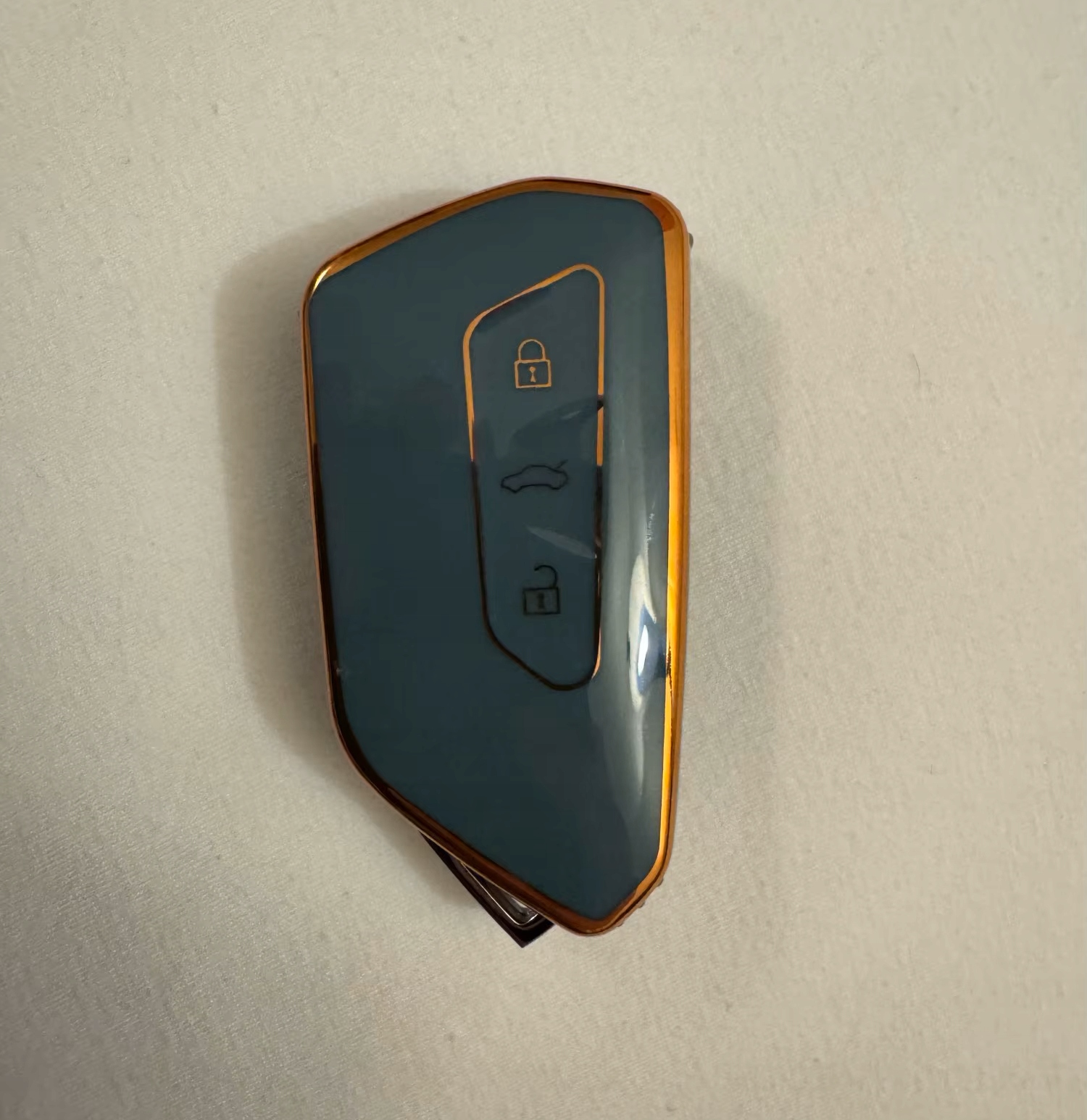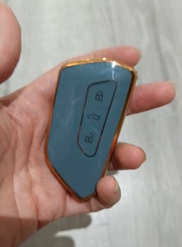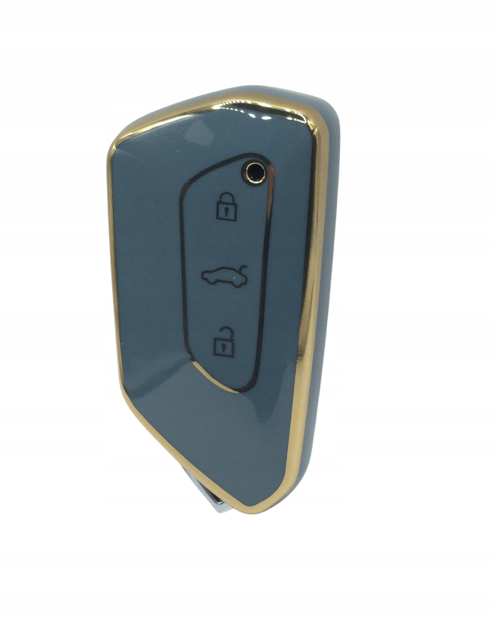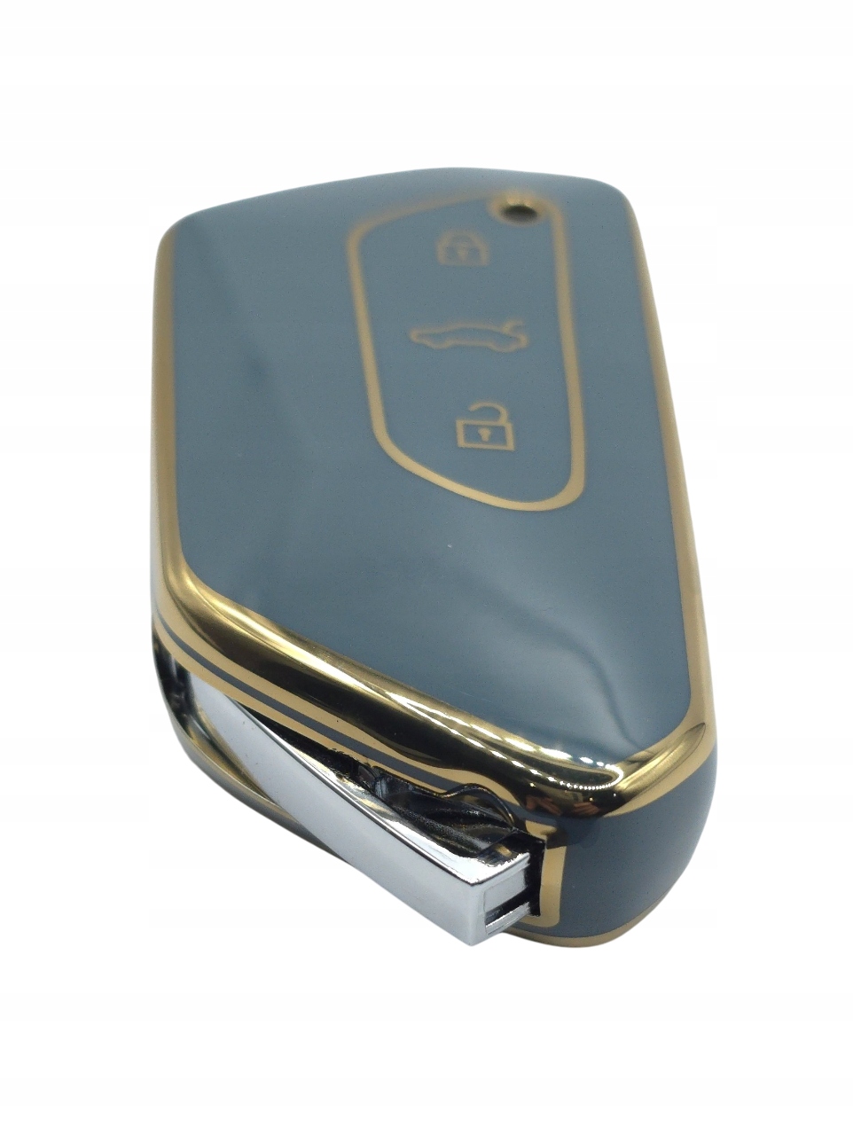 Пропозиція включає новий футляр, кришку для версії безключового ключа SMART (безконтактний запуск автомобіля) з гнучкого матеріалу TPU сталевого кольору з золотим обідком для VW, Seat/Cupra та Skoda: