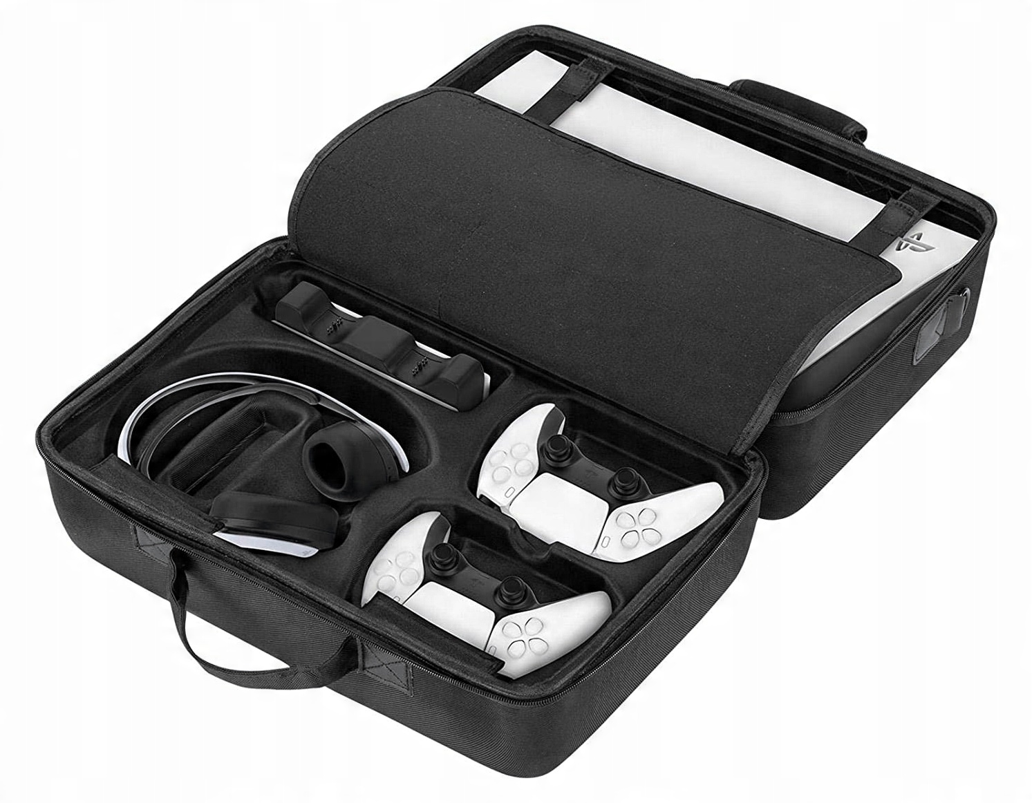 Новий спеціальний посилений чохол типу валіза на подвійній блискавці для всіх моделей консолей Sony PlayStation 5, PS5з високоякісного матеріалу. Чохол дуже міцний і ідеально захищає вашу консоль і всі аксесуари Dualsense, зарядний пристрій, гарнітуру, док-станцію, кабелі живлення та сигналу, ігри, навушники та багато іншого від механічних пошкоджень, ударів, вологи та пилу.
