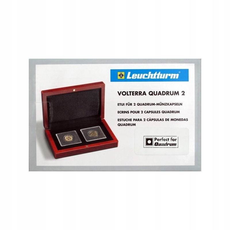 Кейс Leuchtturm з червоного дерева для двох монет в капсулах квадрум