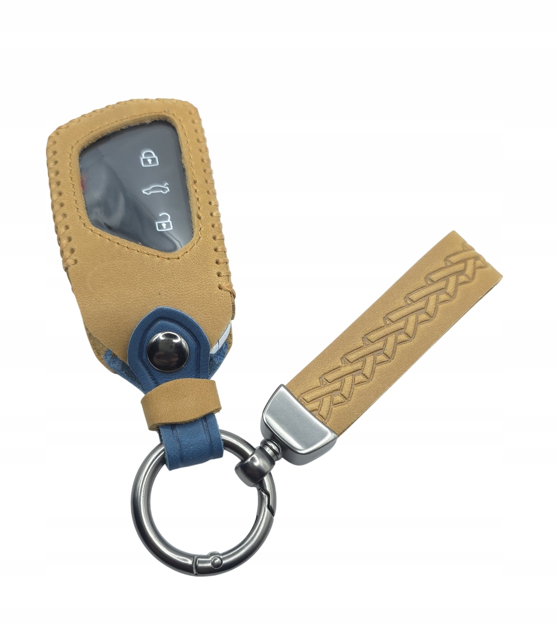 Чохол для ключа VW Cupra Skoda Octavia Fabia Superb Enyaq VW ID.4 ID.5 ID.BUZZ Golf Taigo Polo Passat Tiguan Caddy Born Formentor Tavascan Terramar smart keyless Crazy Horse темно-синій