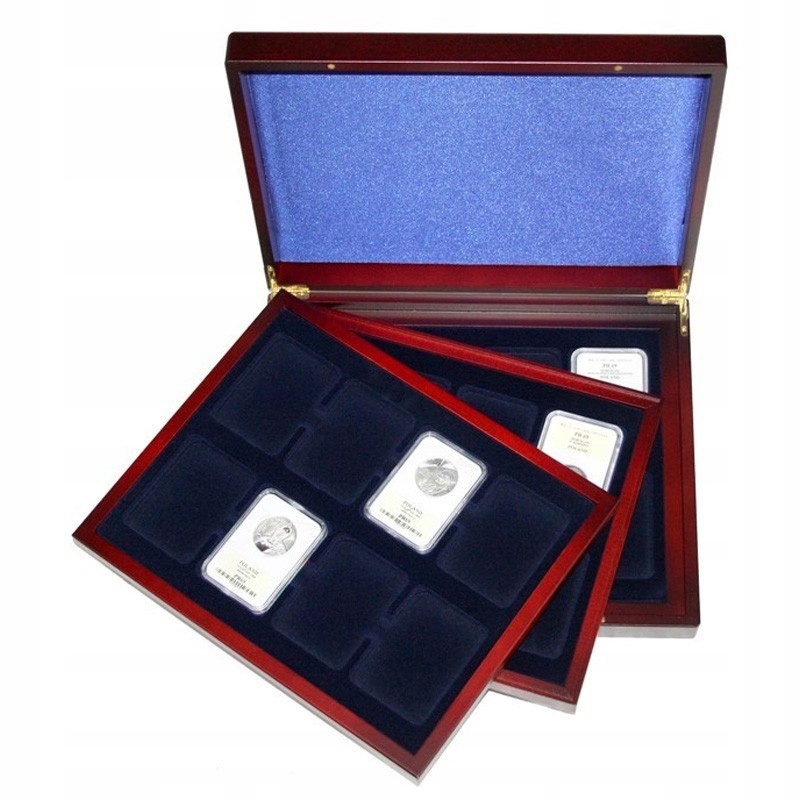 Кейс з червоного дерева на 60 монет в холдерах і ковпачках