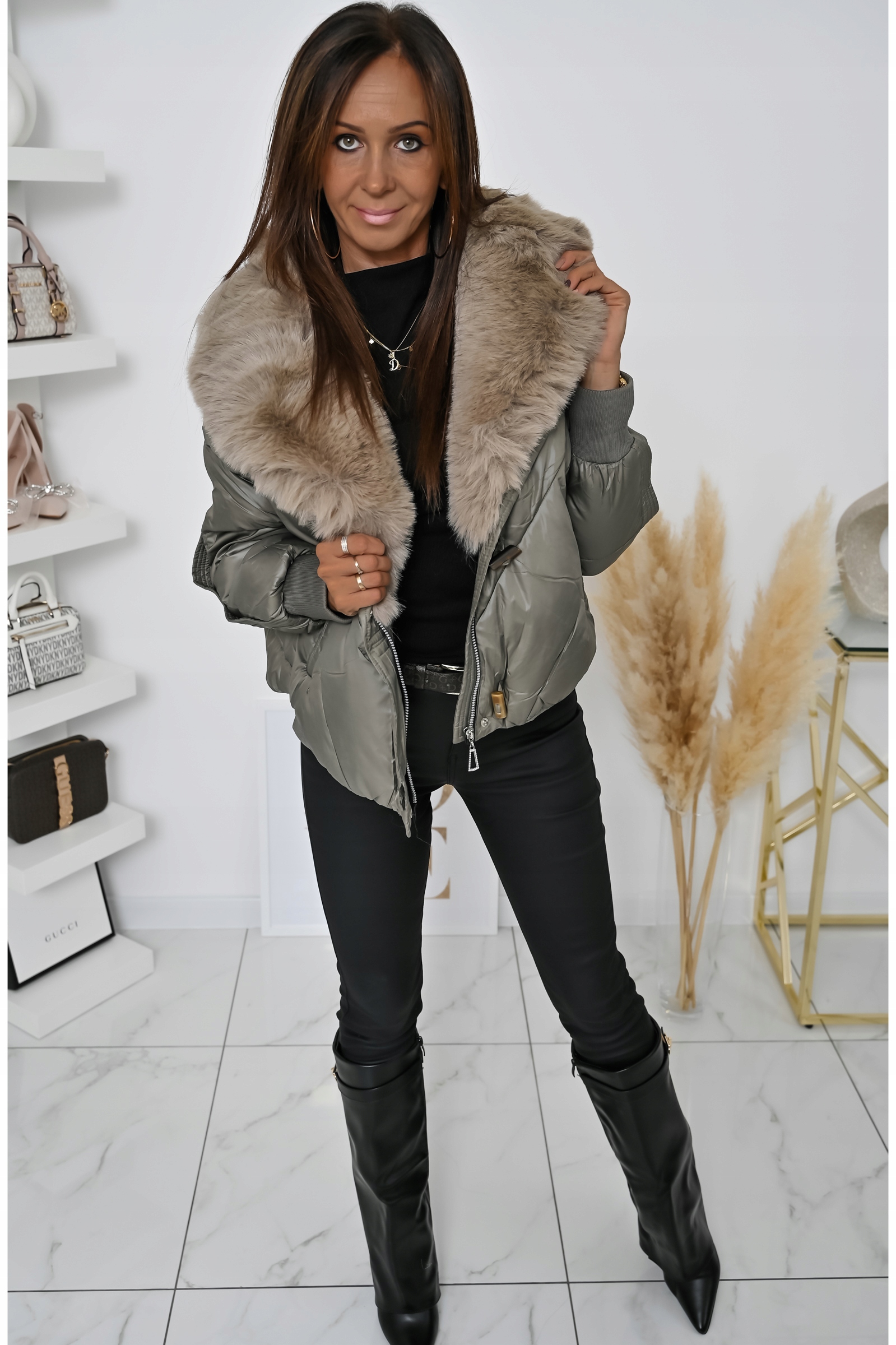 ✨ Короткий, трохи завищений крій забезпечує комфорт і сучасний вигляд, а привабливий комір з м’яким пухнастим (знімним) хутром додає елегантності та розкішного характеру.