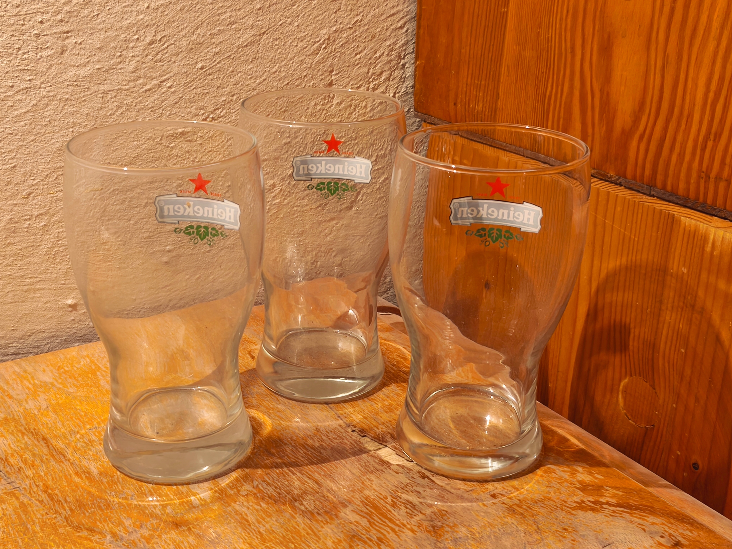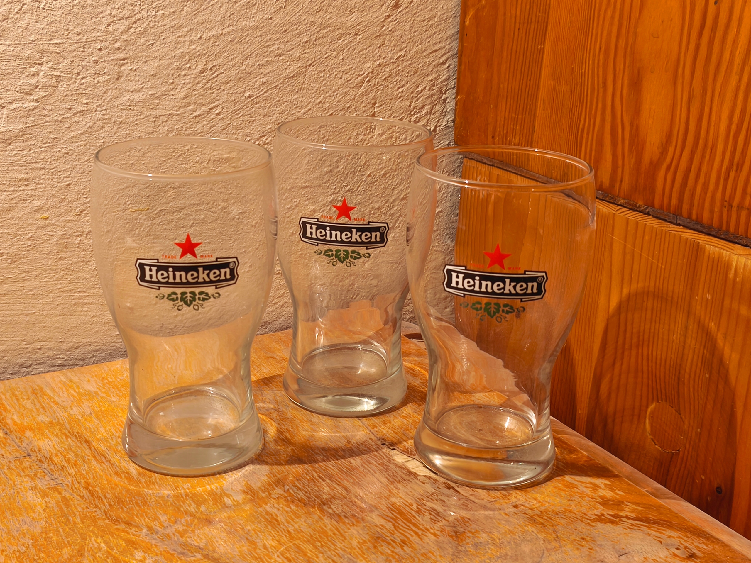 Тема продажу - це стара склянка для голландського пива Heineken.