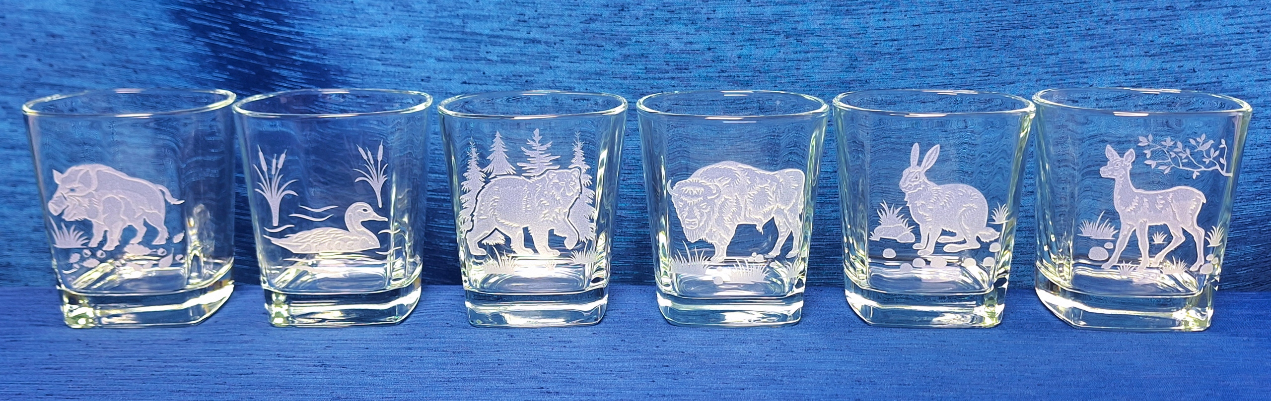 Келих для віскі Sterling з одного боку прикрашений мотивом полювання. У набір з 6 предметів входять стакани: