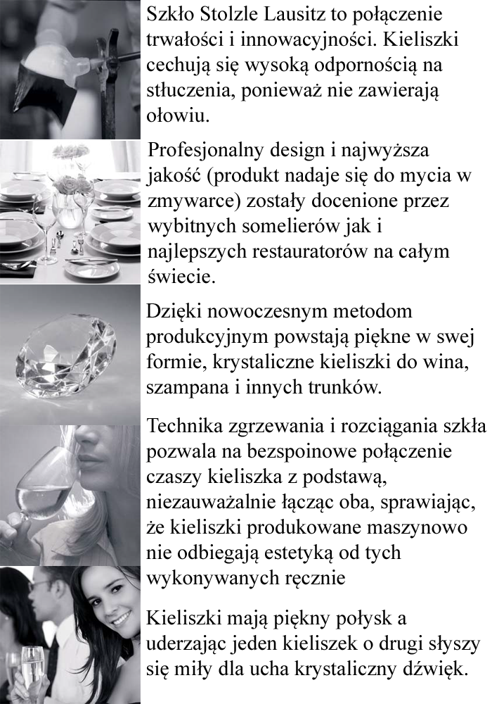 Stolzle Lausitz — це бренд класу люкс. Компанія спеціалізується на виробництві скляного посуду найвищої якості з 1889 року. Вироби виготовляються з кришталю без додавання свинцю.