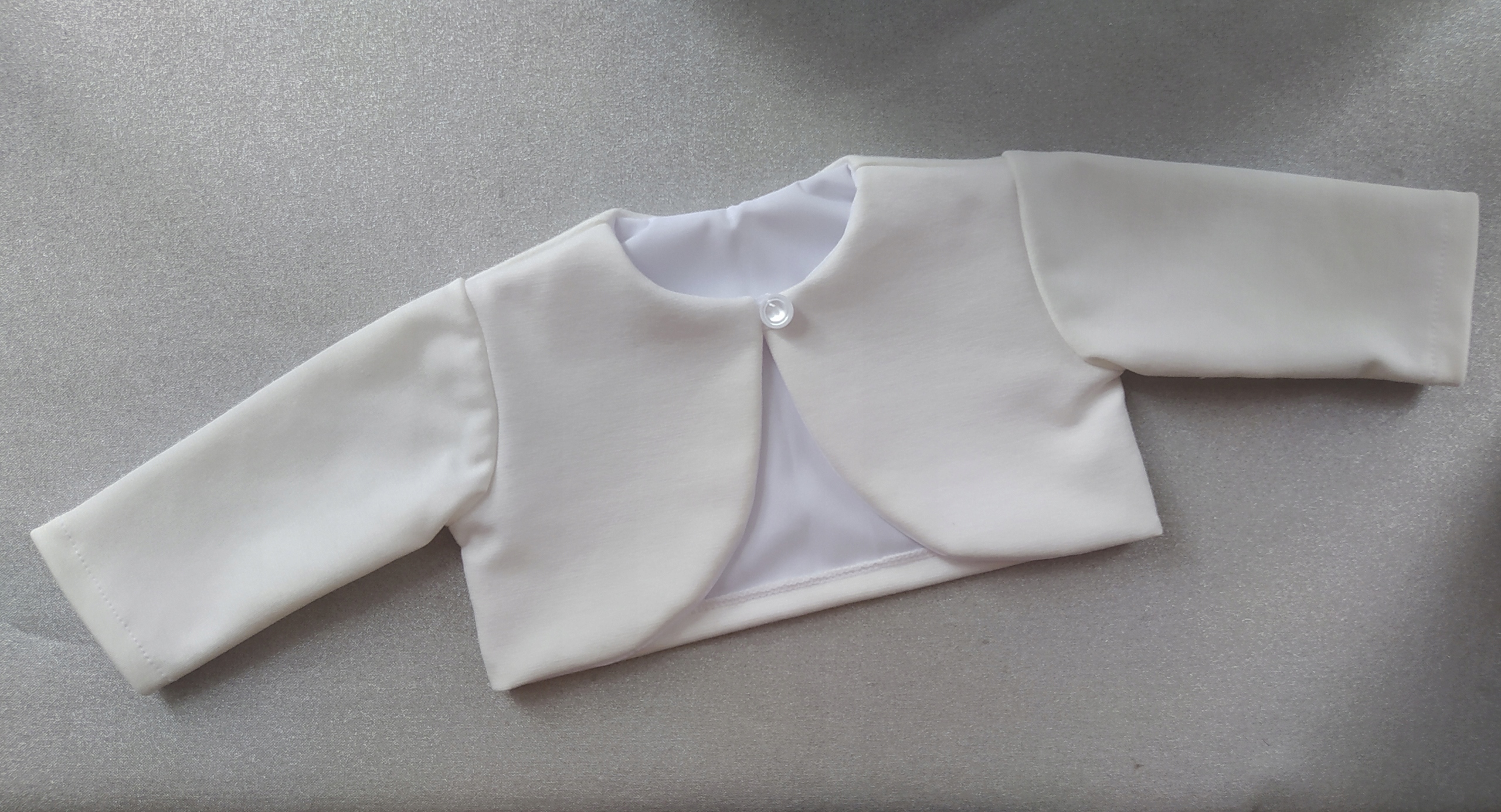 Дитяче болеро з м'якої тканини, бавовняна підкладка, застібається на ґудзик.