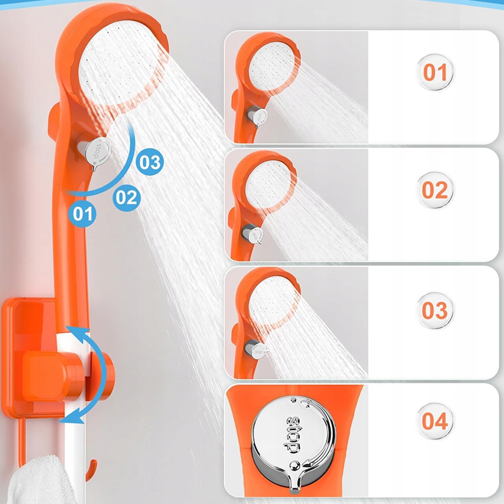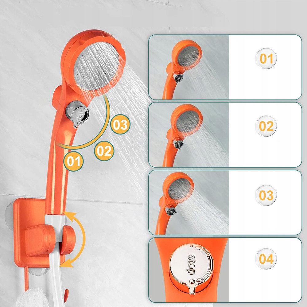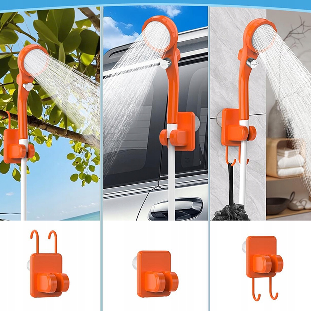- ✔ оснащений ручкою, 3 присосними чашками та 2 гачками, ви можете насолоджуватися душем, не використовуючи руки. Підключення ручки та присосного чашки підходить для будь -якої плоскої, гладкої поверхні, а гачок підходить для гілок або інших опор.