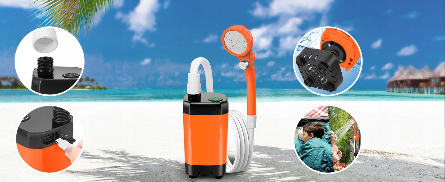 душ для кемпінгу з насосом є водонепроникним IPX7, що дозволяє занурювати все тіло у воду, а зарядний порт оснащений кришкою, стійким до води, щоб забезпечити безпечне використання. Дизайн присоски на дні насоса для кемпінгу забезпечує, що насос для душу міцно прикріплений до дна бочки, щоб запобігти облінню.
