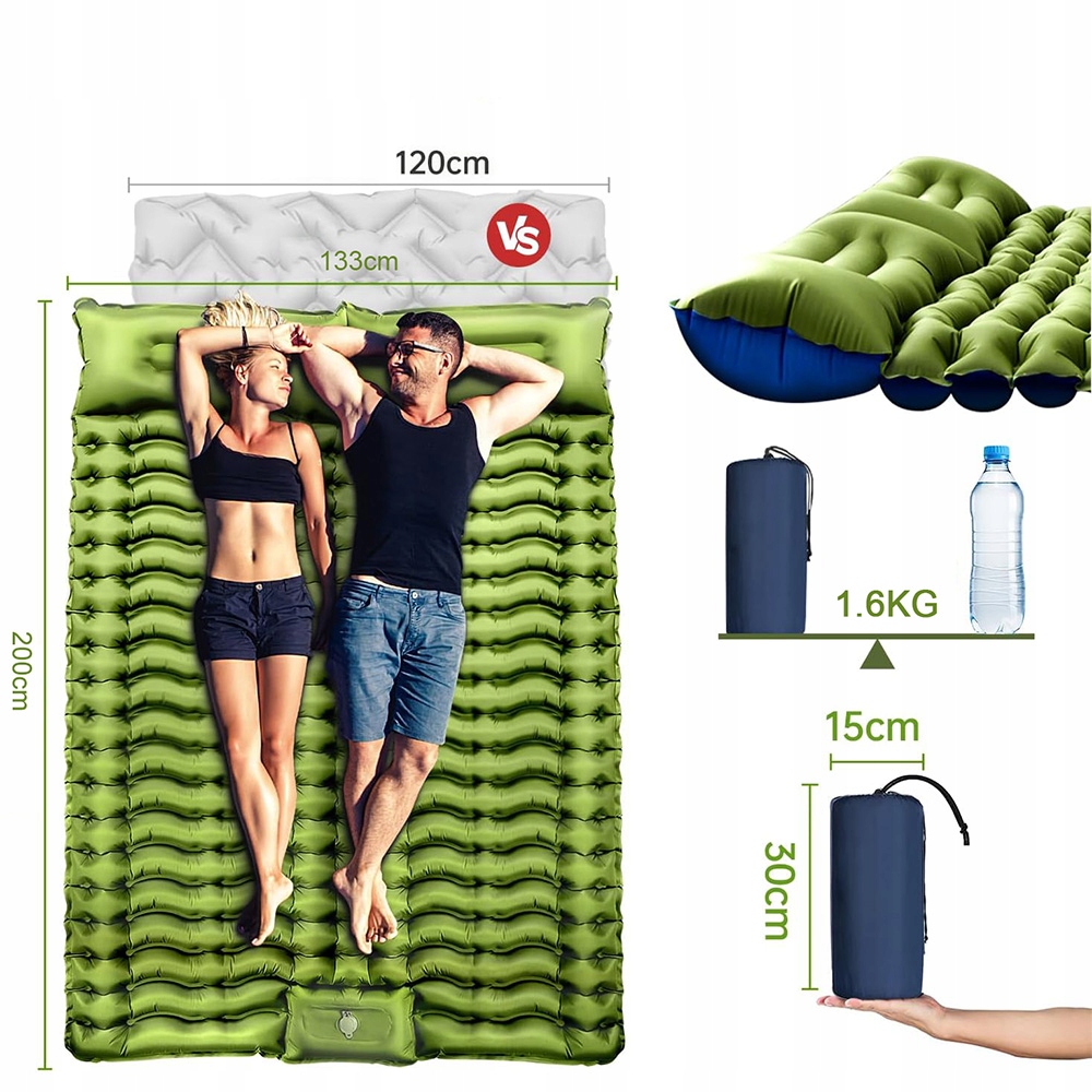 Після складання самоінфлюзуючий повітряний матрац має розміри 30 х 15 см. Набір включає спеціальну сумку для зберігання, він легко вписується в рюкзак, легко переносити, завдяки якому ваш досвід кемпінгу буде стресом. Ідеально підходить для активності на свіжому повітрі або блукання, кемпінгу, гірських подорожей, подорожей або походів.
