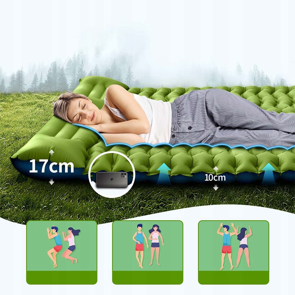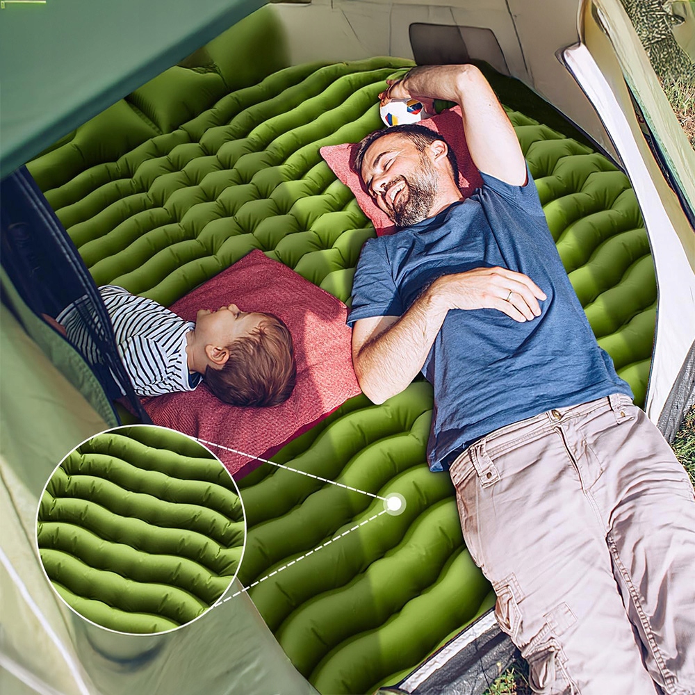 Само -інфоматруючий повітряний матрац був зроблений з інноваційною хвилястим малюнком, 10 см після повної інфляції, забезпечує належну підтримку спини. Ви ніколи не відчуєте вологого ґрунту або твердих каменів під час подорожі чи кемпінгу, незалежно від того, лежите ви рівномірно, щоб ви могли насолоджуватися комфортним сном навіть на вулиці.