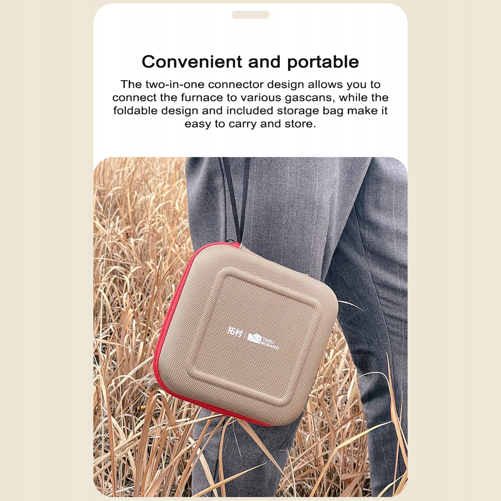 4. Зручний та портативний: 2 в 1 роз'єм дозволяє підключити піч до різних газових контейнерів, а складна конструкція та кріплена сумка для зберігання полегшують перенесення та зберігання.
