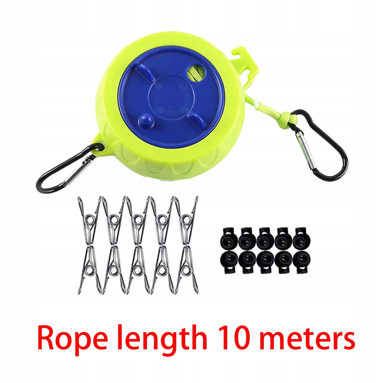 Кемпінгова мотузка для білизни, висувна мотузка для ванної, походи, рюкзак, 10 пряжок, 10 затискачів, зелений