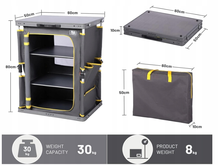 Незважаючи на міцну конструкцію, шафа легка і зручна для перенесення, що робить її ідеальною для кемпінгу, пікніка або відпочинку в саду.
