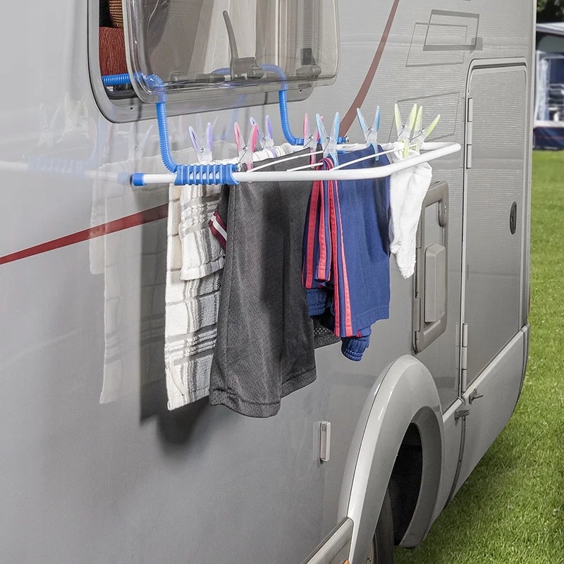 Сушарка має 6 ліній завдовжки 50 см, що дозволяє одночасно висохнути більше одягу, що особливо корисно під час довших поїздок, коли одяг для миття та сушіння стає обов'язковим. Компактні розміри та легка конструкція не обмежують функціональність сушарки, що дозволяє ефективно використовувати простір.