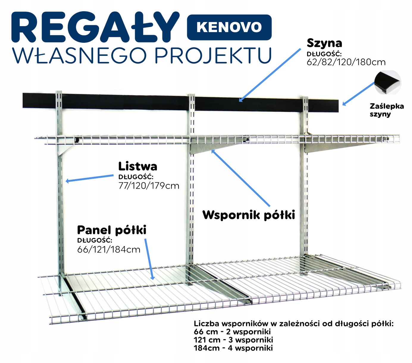 Kenovo SET настінна рейка гачок полиця інструменти 180см рейка, гачки, кошик