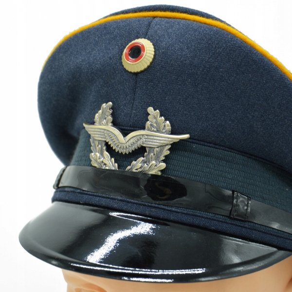 Оригінальна німецька авіаційна кепка - Люфтваффе. Виготовлений у блакитному кольорі з міцного матеріалу, який складається з55% поліестеру, 45% бавовни. На лицьовій стороні є металева булавка із зображенням орла, що символізує сили Люфтваффе.