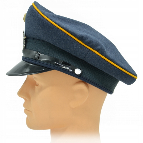 Оригінальна німецька авіаційна шапка - Люфтваффе. Виготовлений у блакитному кольорі з міцного матеріалу, який складається з55% поліестеру, 45% бавовни. На лицьовій стороні металева булавка із зображенням орла, що символізує війська Люфтваффе.