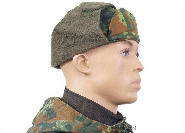 Запрошую придбати теплу осінньо-зимову шапку BUNDESWEHRY у камуфляжі Flecktarn. Залежно від погодних умов ми можемо носити шапку як звичайну теплу зимову шапку або, розгорнувши козирок і відкинувши вушанки, як перехідну осінньо-зимову шапку.