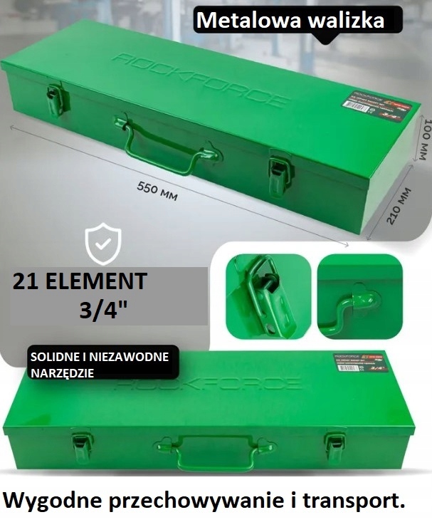 Rockforce набір, що складається з 21 el. У валізі - прекрасний і функціональний набір, який, безумовно, задовольнить будь -якого любителя автомобілів. Набір включає широкий вибір кріплень різних розмірів, що дозволяє використовувати його при ремонті багатьох моделей автомобілів. Набір включає валізу для подорожей, яка може легко поміститися в багажник вашого автомобіля. Більше того, цей набір вкладень ідеально підходить для використання вдома. Інструменти виготовлені з високоякісних матеріалів, що забезпечують довговічність та надійність.