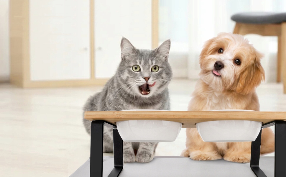 Ця годувальна станція з двома керамічними мисками насолодиться вашим вихованцем та полегшить шию.