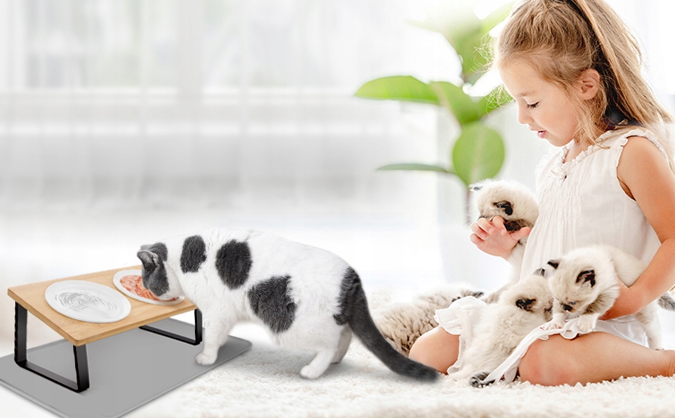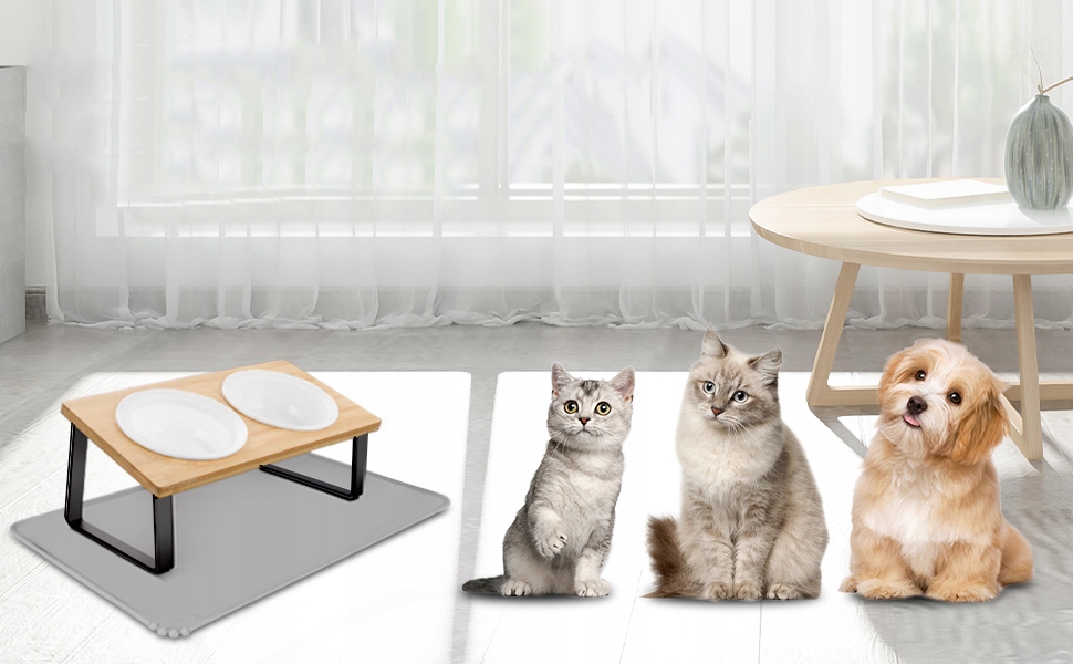 - природний бамбуковий дерев’яний каркас без запаху, водонепроникний, стійкий до деформації, плавно відшліфований і не-дамбу. Площу можна легко очистити. Силіконовий не -Slip 47,5 х 29,5 см був спеціально підготовлений для того, щоб утримати свою кішку та маленьку собаку в їдальні.