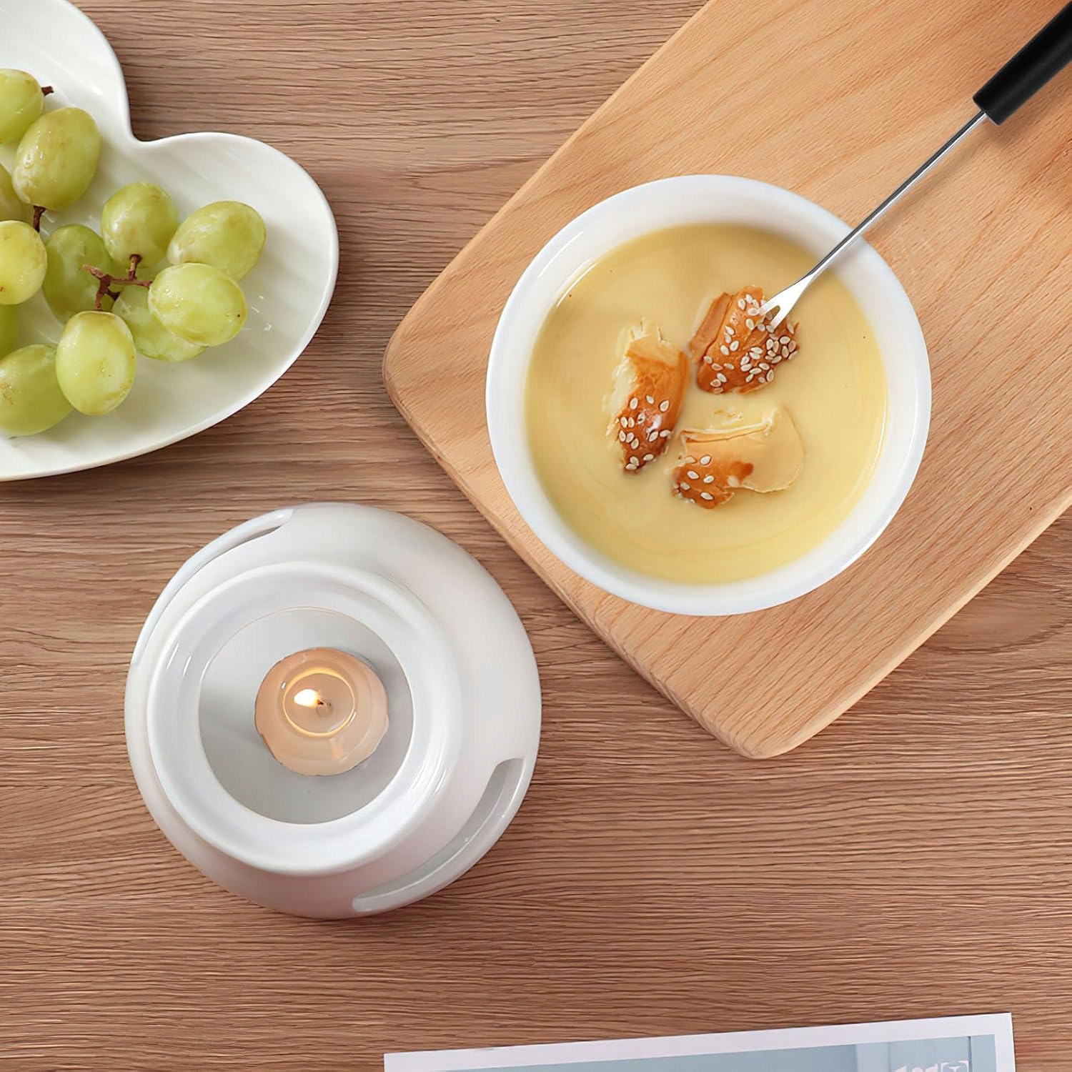 Ця керамічна чаша з фондю з основою для нагрівача - це незамінний інструмент для любителів солодких задоволення, які хочуть створити унікальну атмосферу під час романтичних вечорів, подій чи сімейних зустрічей. Завдяки цьому ви можете насолоджуватися шоколадом для потепління фондю в компанії близьких людей, створюючи незабутні моменти та спогади.