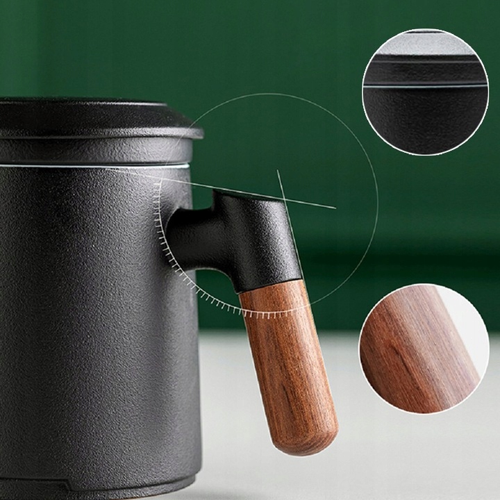 Чашка для заварювання чаю розроблена професійними митцями, класична чорна глазур, нанесена майстрами вручну, додає зернисту текстуру, а внутрішня глянцева глазур дозволяє легко побачити колір теплого чаю.