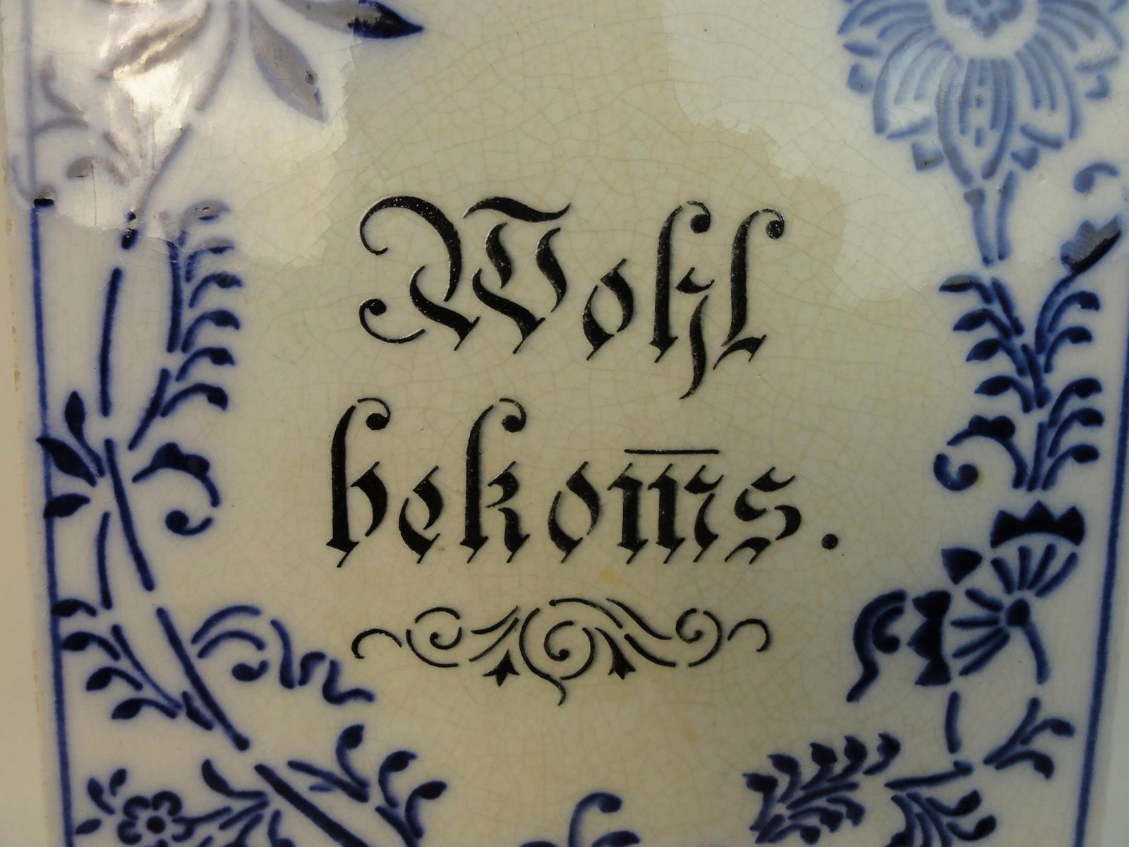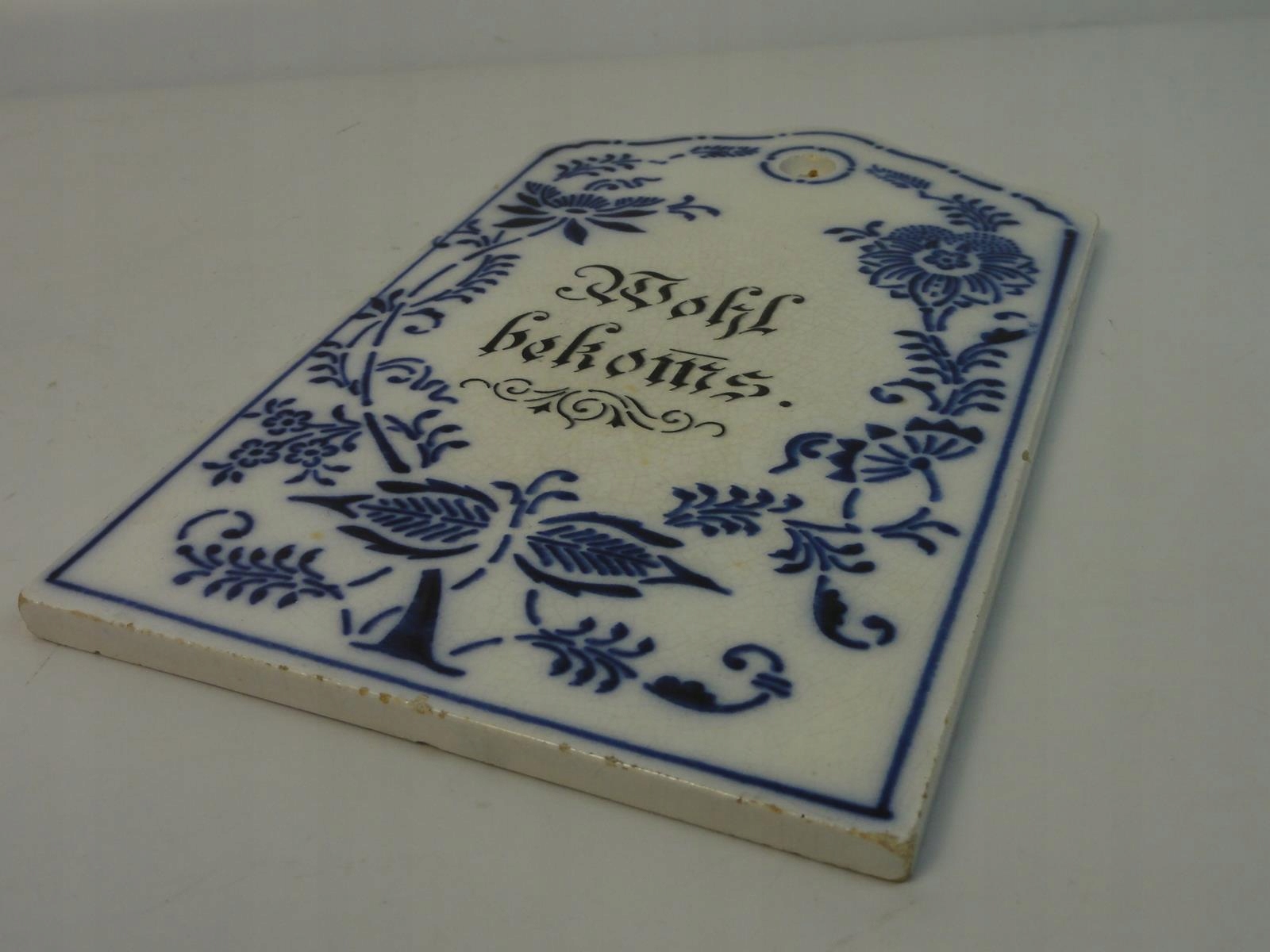 * ручний кобальт у так -цільованому шаблоні цибулі, з написом німецькою мовою "нехай вони будуть задані"