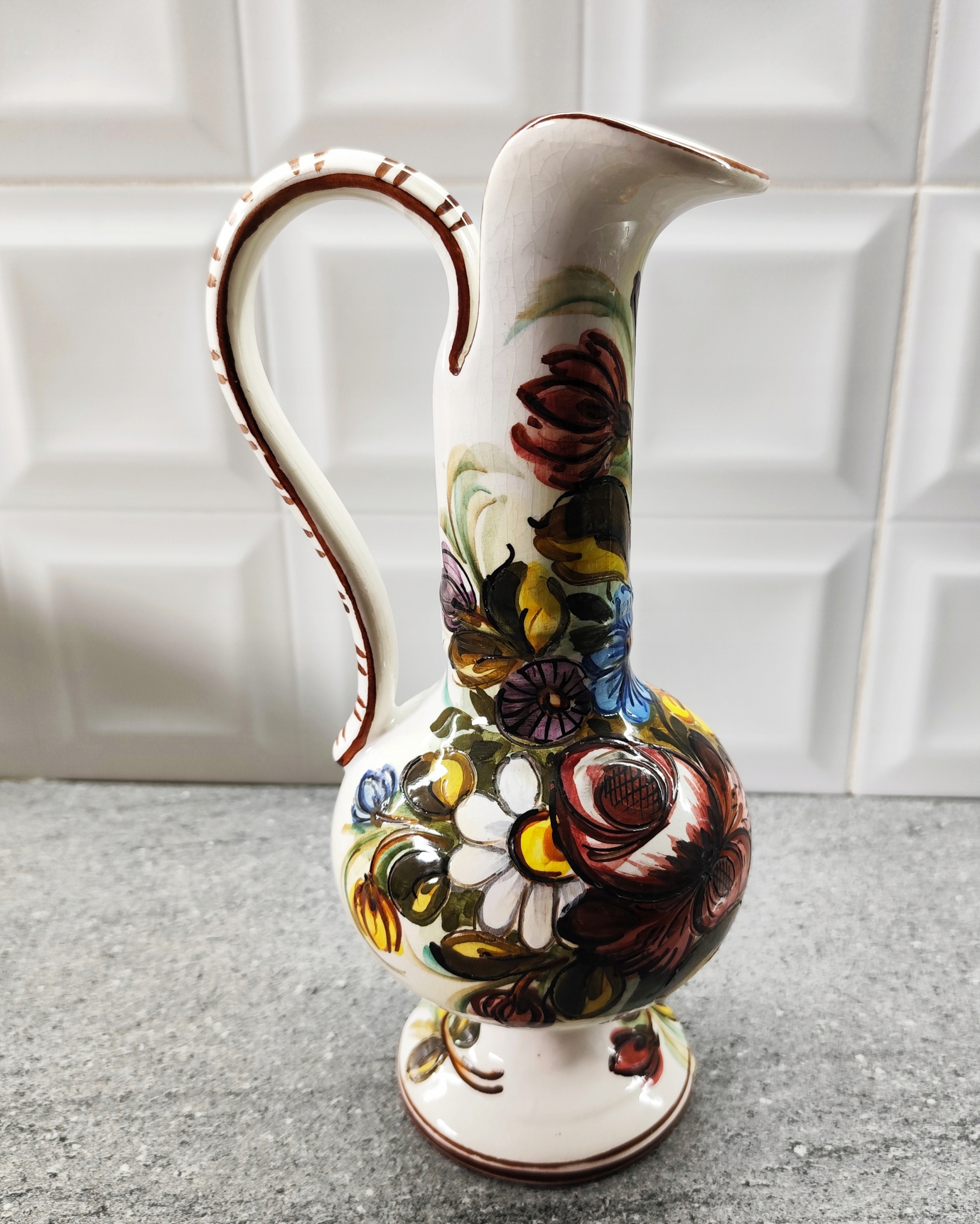 Керамічна глечик -зафіксована висока ваза в італійських квітках + безкоштовно