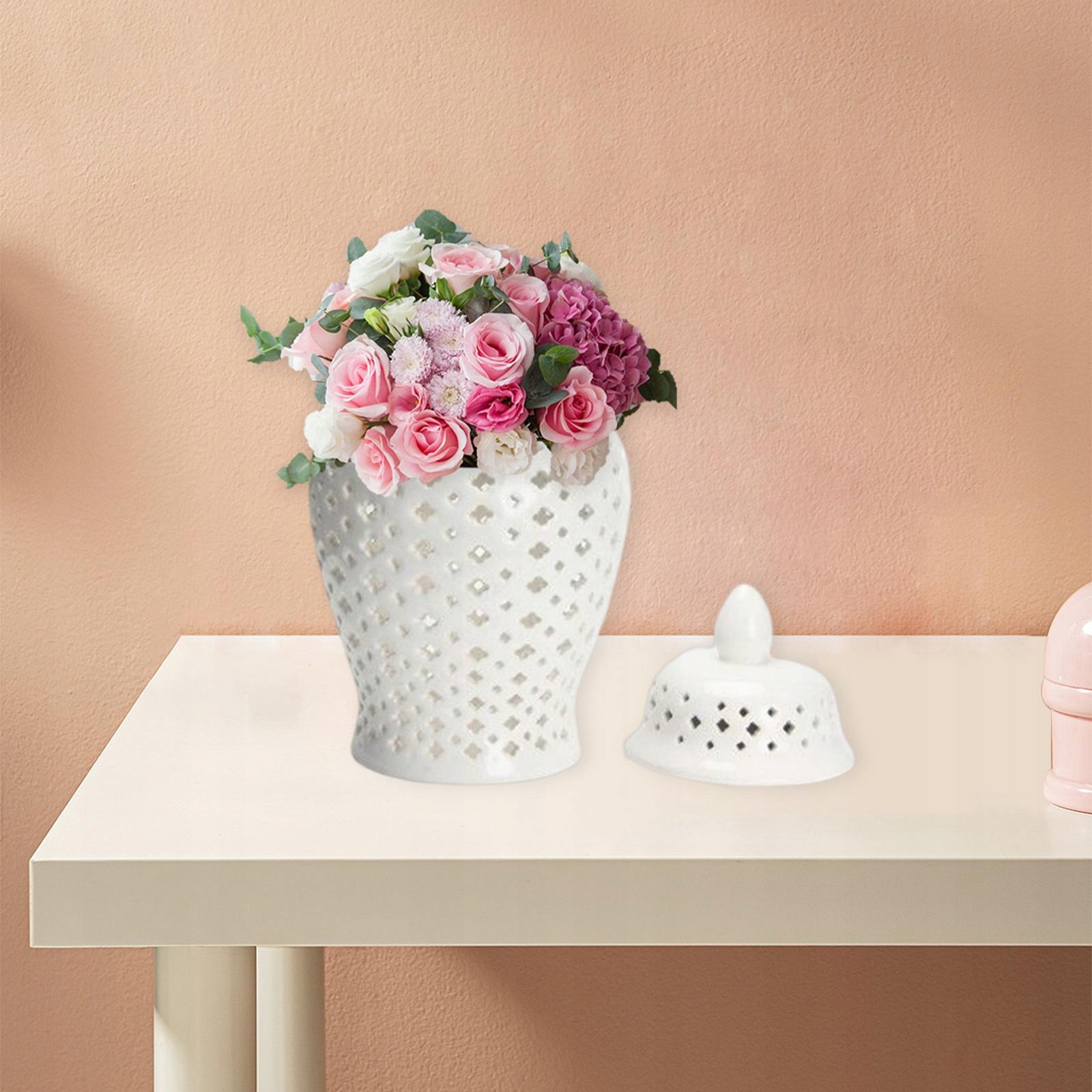 Природний дизайн: порцелянова банка з решіткою. Горловина банки гладка, кришка знімна, ідеально підходить для зберігання квітів. Дизайн додає природного вигляду, створюючи атмосферу в будинку та саду.