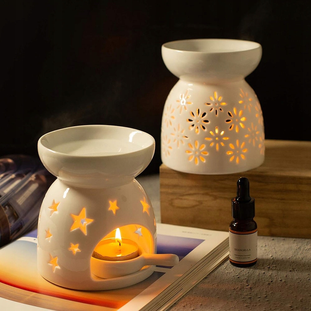 Лампа з ароматом чайного світла має чудові візерунки зірок. Коли свічка горить, ви відчуваєте, ніби вас оточують мерехтливі зірки, що робить ароматичну лампу чудовою прикрасою вашого будинку, студії та кафе. Практичний і красивий подарунок для рідних і друзів.