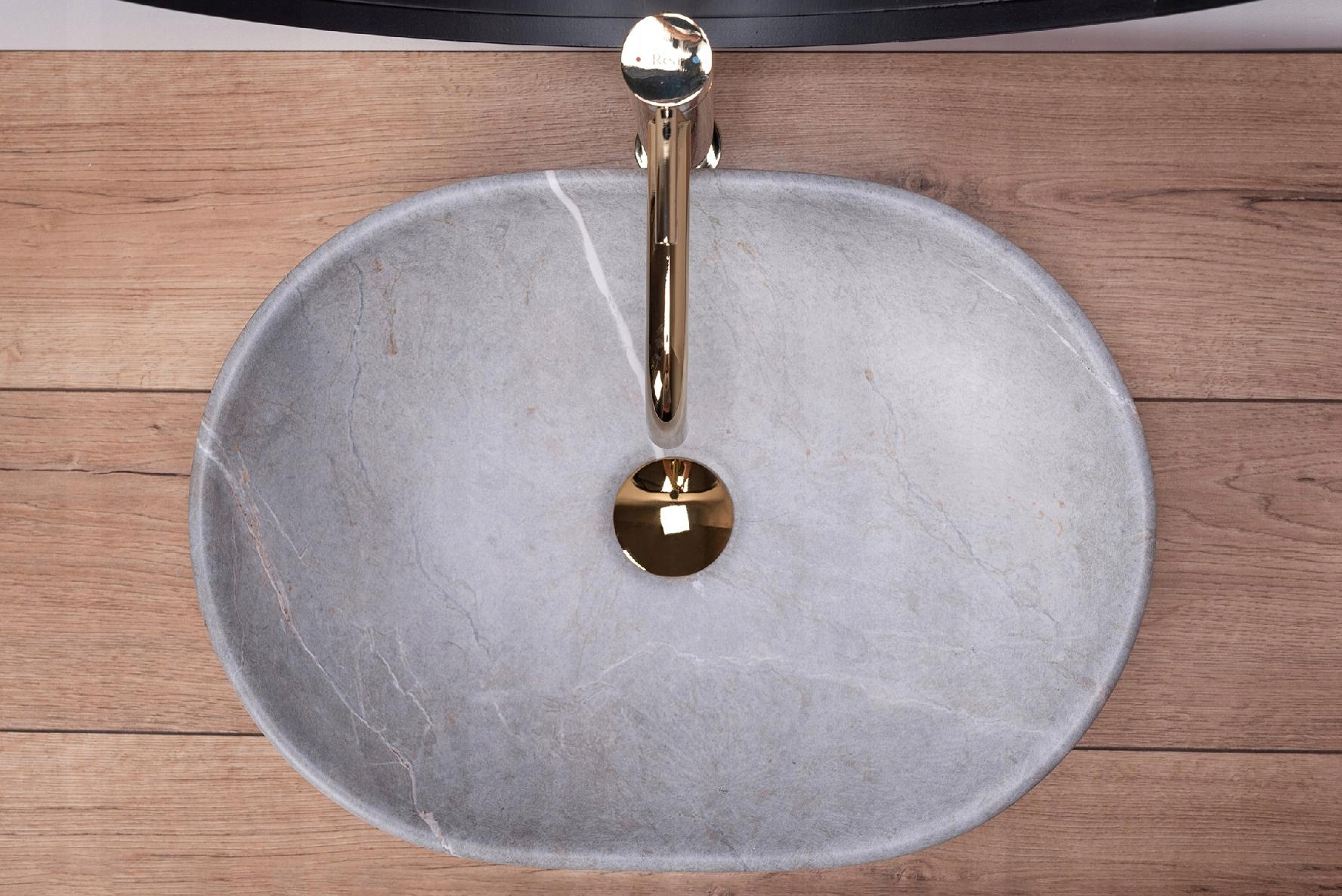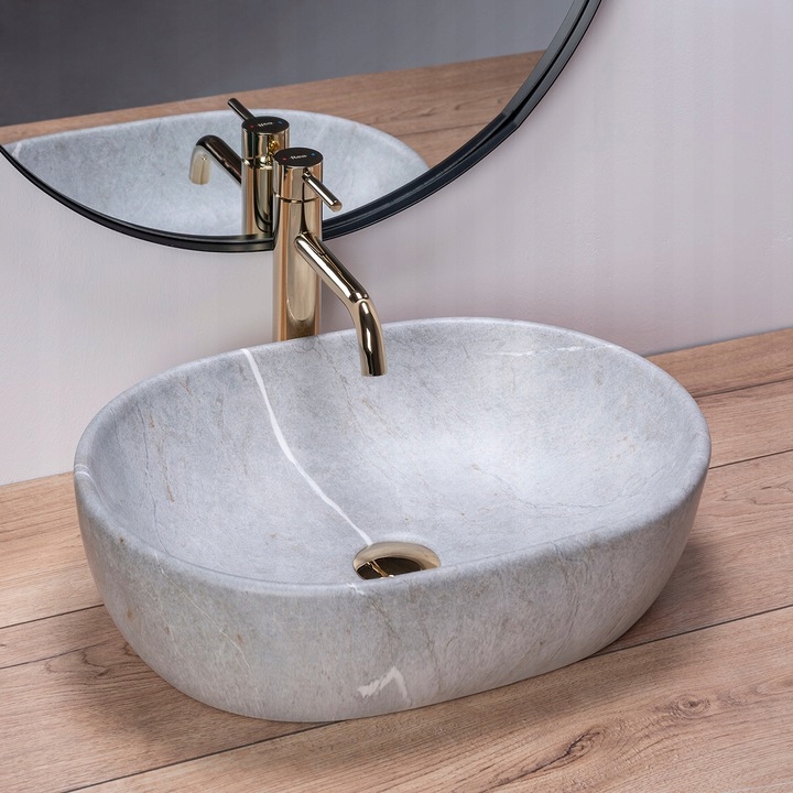 Завдяки техніці виготовлення верхнього шару умивальника кожен виріб має унікальний і неповторний візерунок. Цей ефект імітує натуральний камінь. Умивальник призначений для встановлення на стільницю або шафу. Виготовлена з високоякісної сантехнічної кераміки.