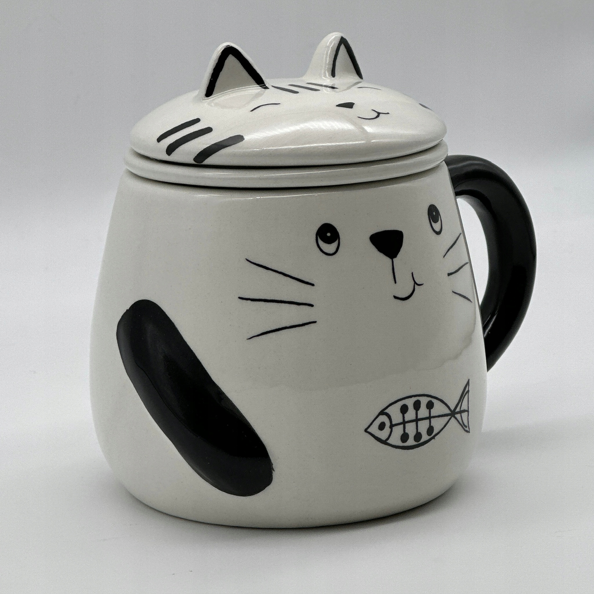Керамічна котяча кухоль з білим інфузером 400 мл з кришкою кошеня