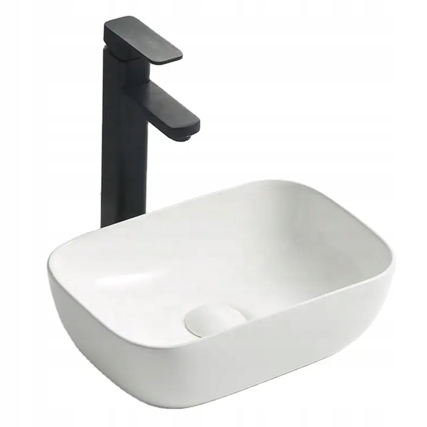 Біла керамічна настільна раковина, ідеально підходить для всіх ванних кімнат. Виготовлена з високоякісної сантехнічної кераміки, покрита блиском. Умивальник призначений для встановлення на стільницю або шафу.