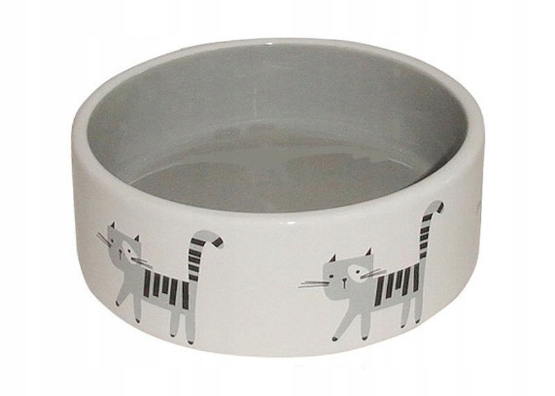 КЕРАМІЧНА МИСКА YARRO ДЛЯ КОТІВ, БІЛА З МАЛЮНКОМ КОТА І СІРОЮ ЦЕНТРКОЮ