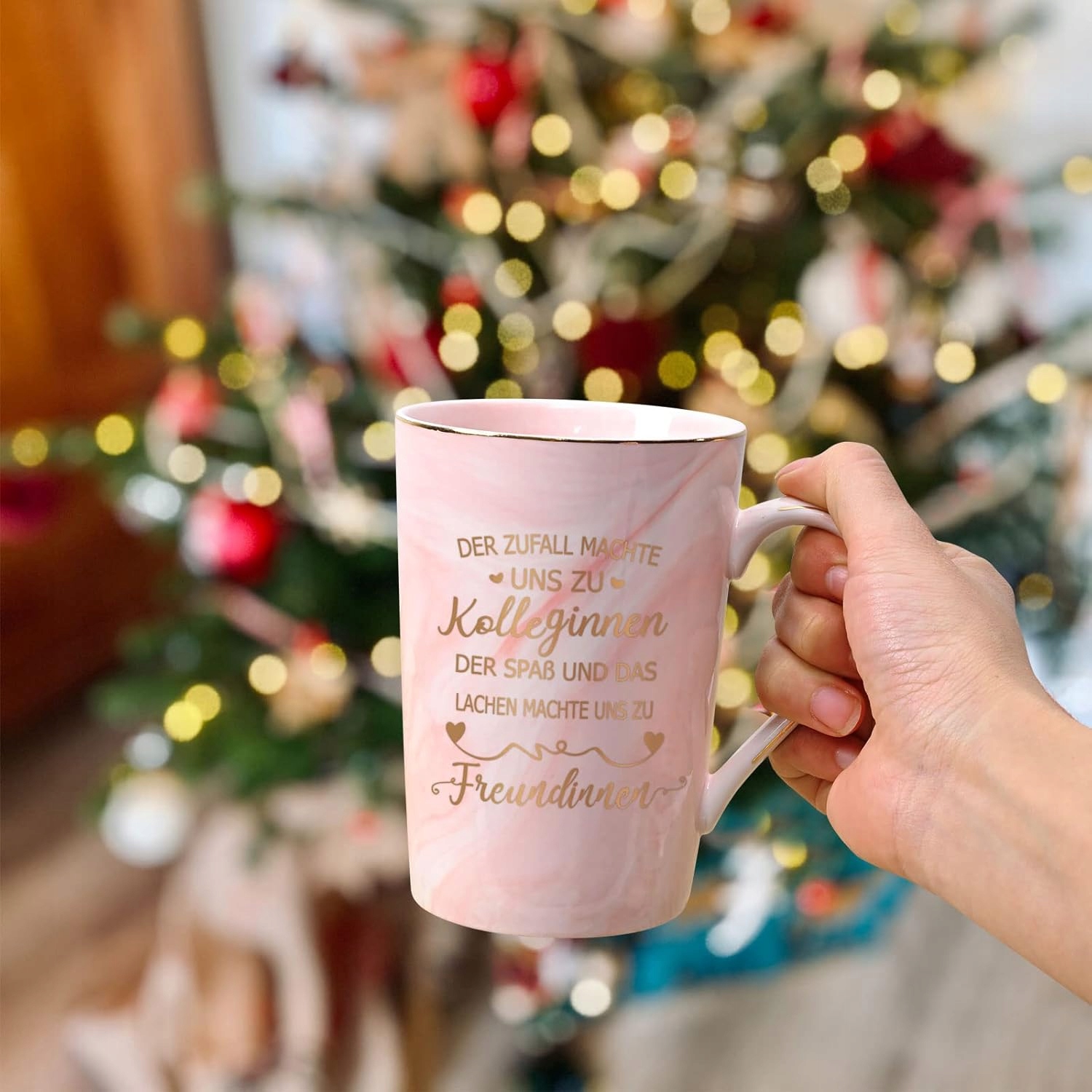 Керамічна рожева кружка кави з кришкою, ложкою та подарунковою коробкою