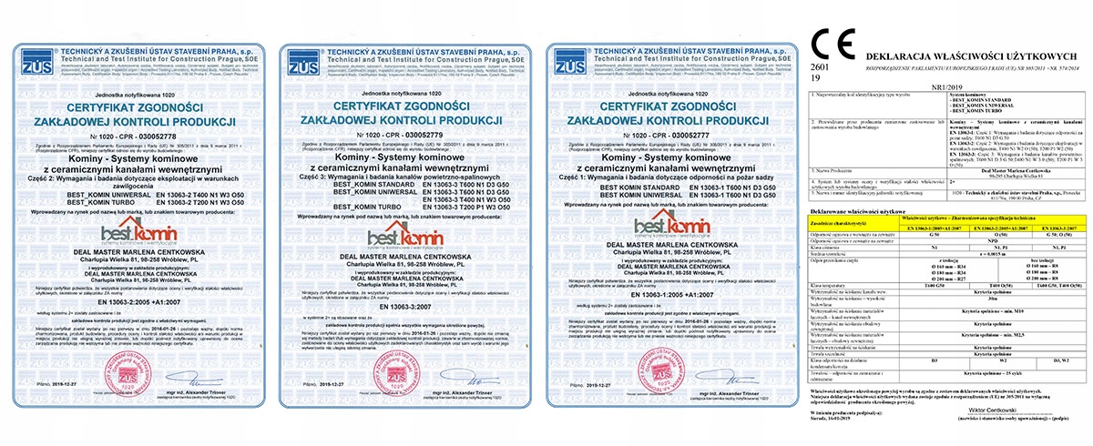 Європейський знак CE для всієї димохідної системи, а не лише для окремих компонентів. Наш димохід - це елемент будівлі, вибір якого повинен бути пов'язаний з виконанням певних умов. Стабільність і стійкість до кислот і високих температур – це лише деякі з небагатьох особливостей, які характеризують нашу систему. Його будівельні матеріали відіграють надзвичайно важливу роль і виготовляються з найкращої сировини. Ми одна з небагатьох компаній у регіоні, яка підтверджує це серією випробувань і сертифікатів з року в рік. Сертифікати доступні у вкладці «Документи для завантаження»