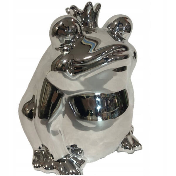 Керамічна срібна жаба-скарбничка 13,5 см