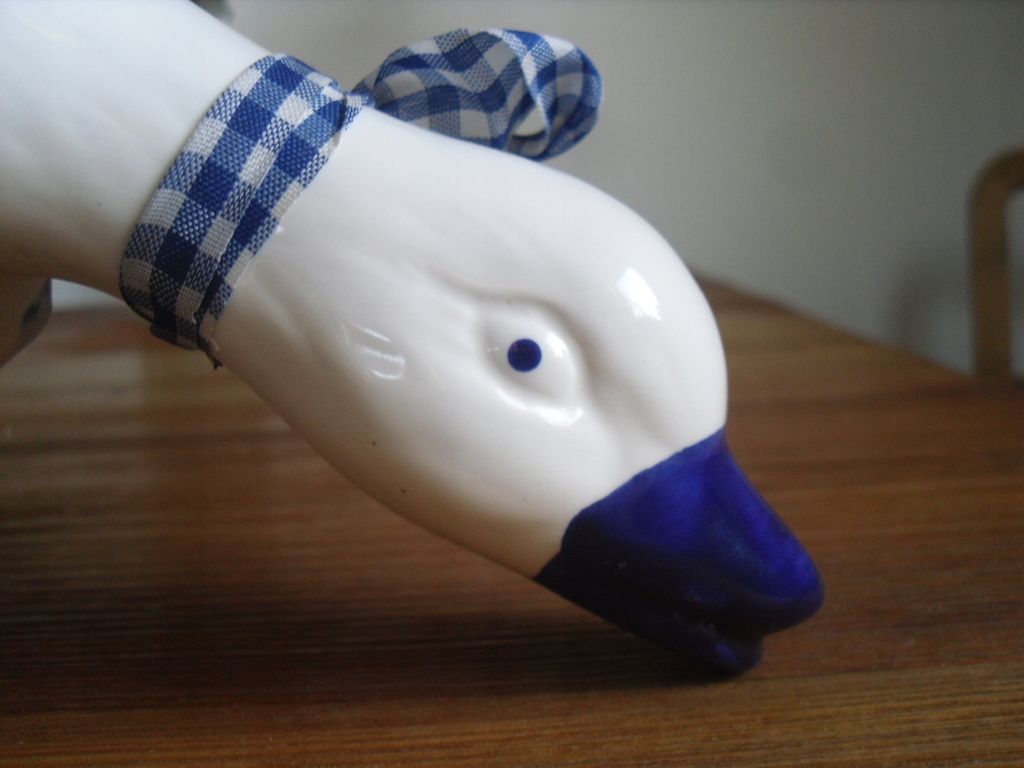 Привіт. На своїх аукціонах я зазвичай пропоную речі часів ПНР і не тільки. На цьому аукціоні пропоную старовинну керамічну фігурку качки або гуски, що висить вниз. Фігурка ідеально підходить для підвіконня, краю столу, стільниці тощо. Дуже гарна прикраса, ідеальна для колекції чи використання. Все без пошкоджень, випране. Дивіться фотографії.