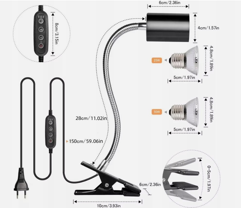 ☑ Інструкції щодо використання: Для захисту безпеки ваших та ваших тварин не торкаються рамки лампи безпосередньо під час використання, щоб уникнути опіків; Тримайте тварини на правій відстані від радіатора, щоб не пошкодити тварин. включаючи черепахи, папуги, змії, жаби тощо