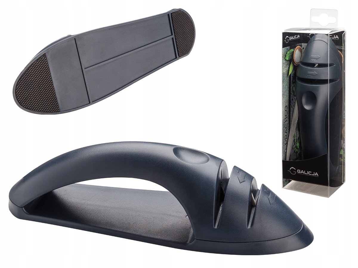 Універсальна точилка для ножів необхідна на кожній кухні. Ручна точилка для сталевих і керамічних ножів виготовлена з пластику найвищої якості. Оснащений керамічним диском для заточування. Точилка для ножів має зручну ручку і протиковзку основу. Ми можемо легко наточити ножі, що полегшує приготування смачних страв. Точила не пошкоджують лезо. Не підходить для миття в посудомийній машині.