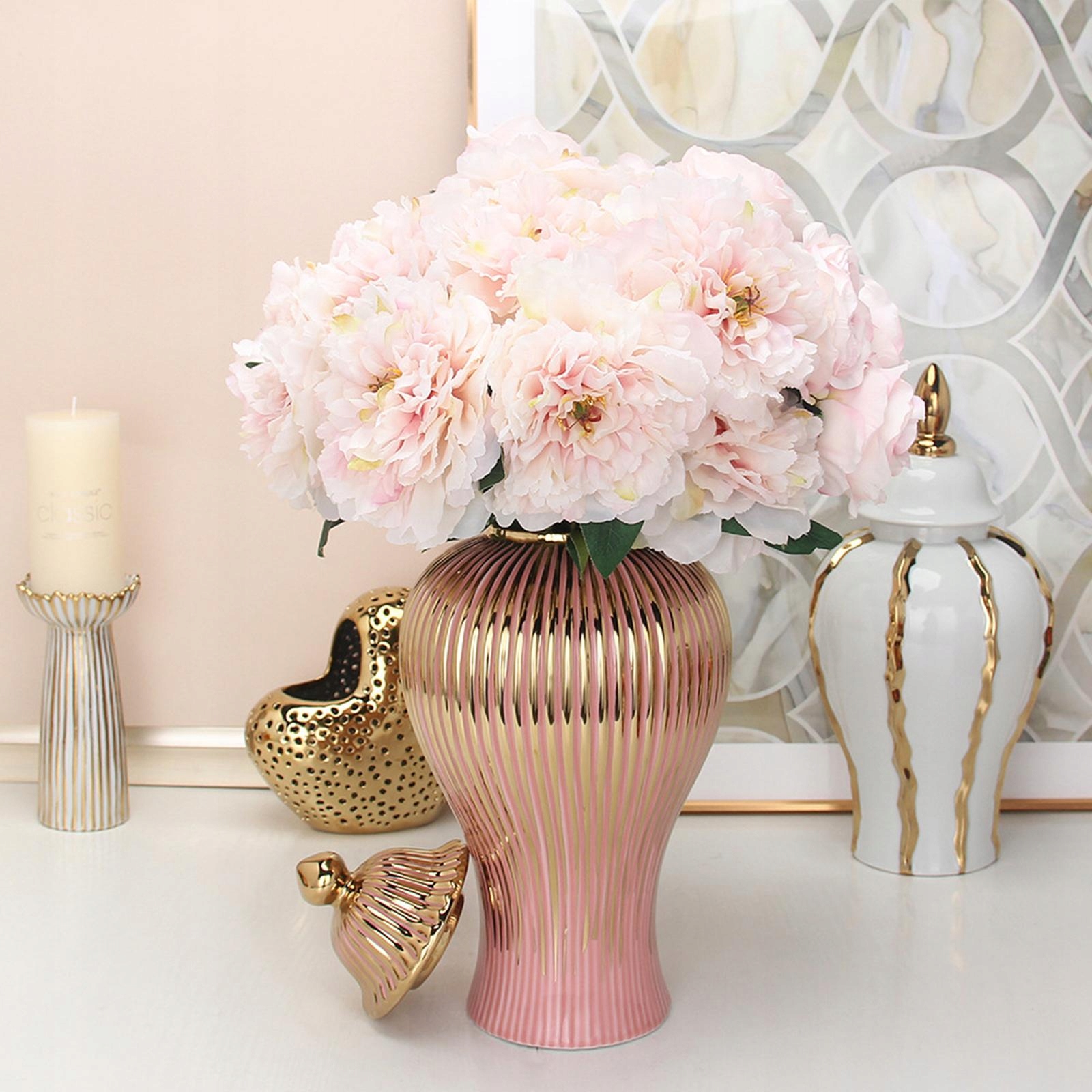 Легка розкішна порцелянова банка з імбиром, керамічна ваза для квітів, квіткова композиція 20 см x 42 см
