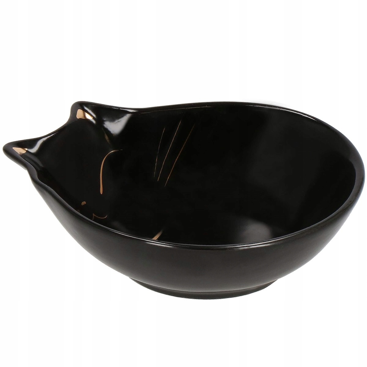 Чорна керамічна мисказ позолоченими котячими декораціями виглядає дуже естетичноі підходить до будь-якого інтер'єру. Форма нагадує силует кота з вушками, що надає додаткову естетичну цінність, привертає увагу та є чарівним акцентом.