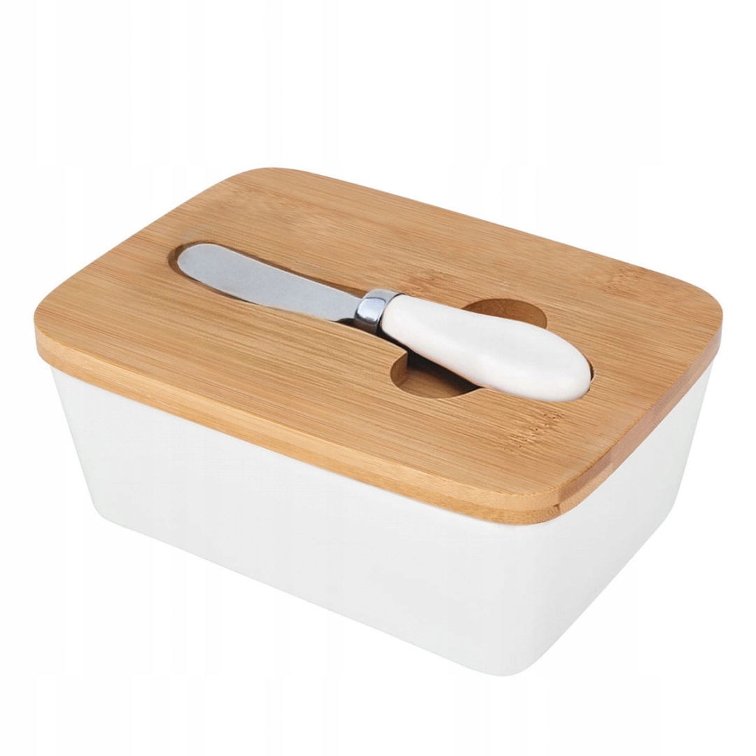 керамічний метелик біло з кришкою, виготовленою з бамбукової деревини. Входить у встановлений змащений ніж з керамічною ручкою. Кришка з бамбукової деревини простягає свіжість вершкового масла. Проста, сучасна форма з бамбуковою кришкою, в якій було вирізано місце для ножа, виглядає чудово. Ви можете відповідати кондитерській в одній конструкції. Кераміка, лезо з нержавіючої сталі, загальна довжина: 13 см