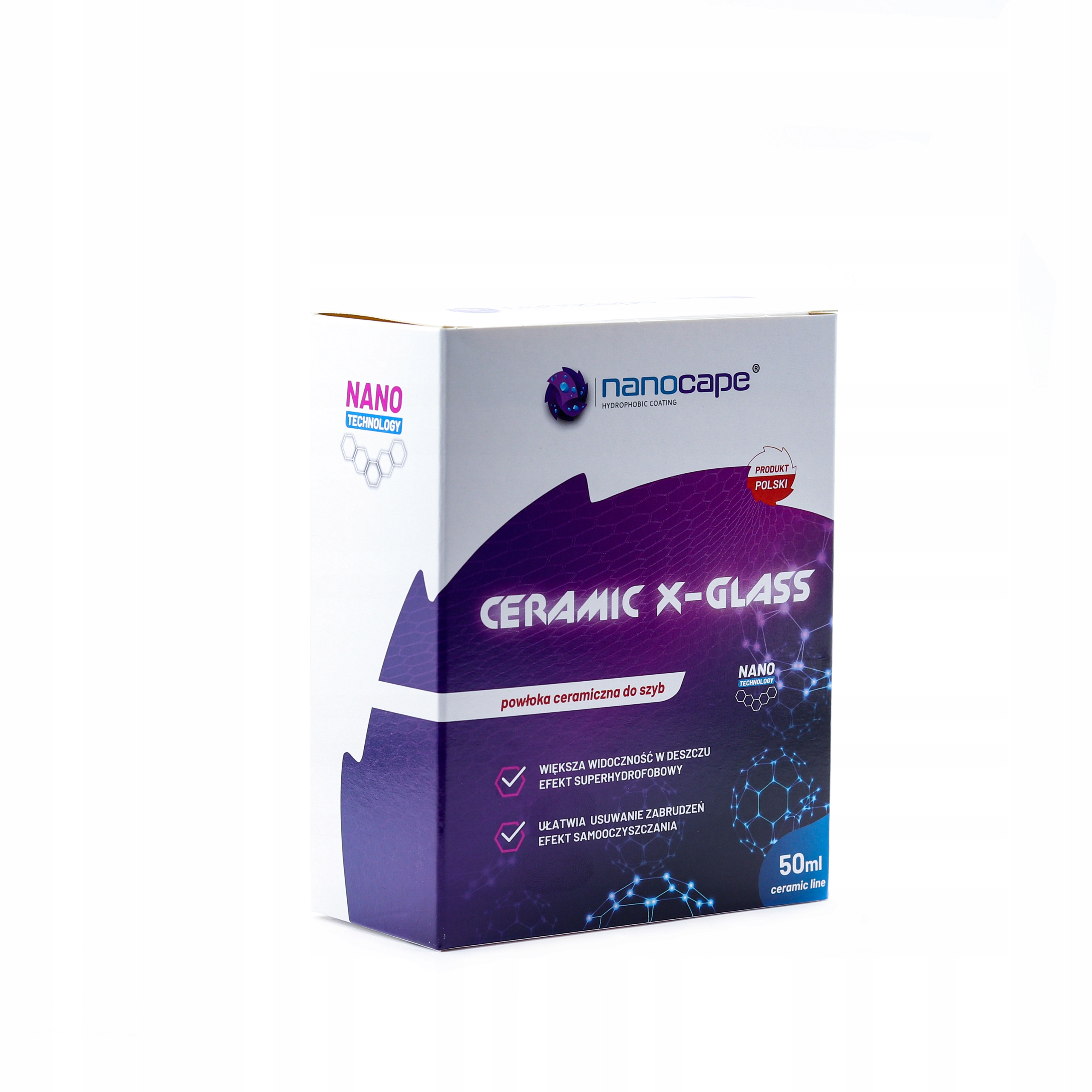 NANOCAPE® CERAMIC X-GLASS - міцне керамічне покриття для вікон автомобіля та інших скляних поверхонь, яке завдяки сітці кераміки з наночастинок захищає поверхню від бруду, води та грязі, УФ-випромінювання та сильних хімікатів.