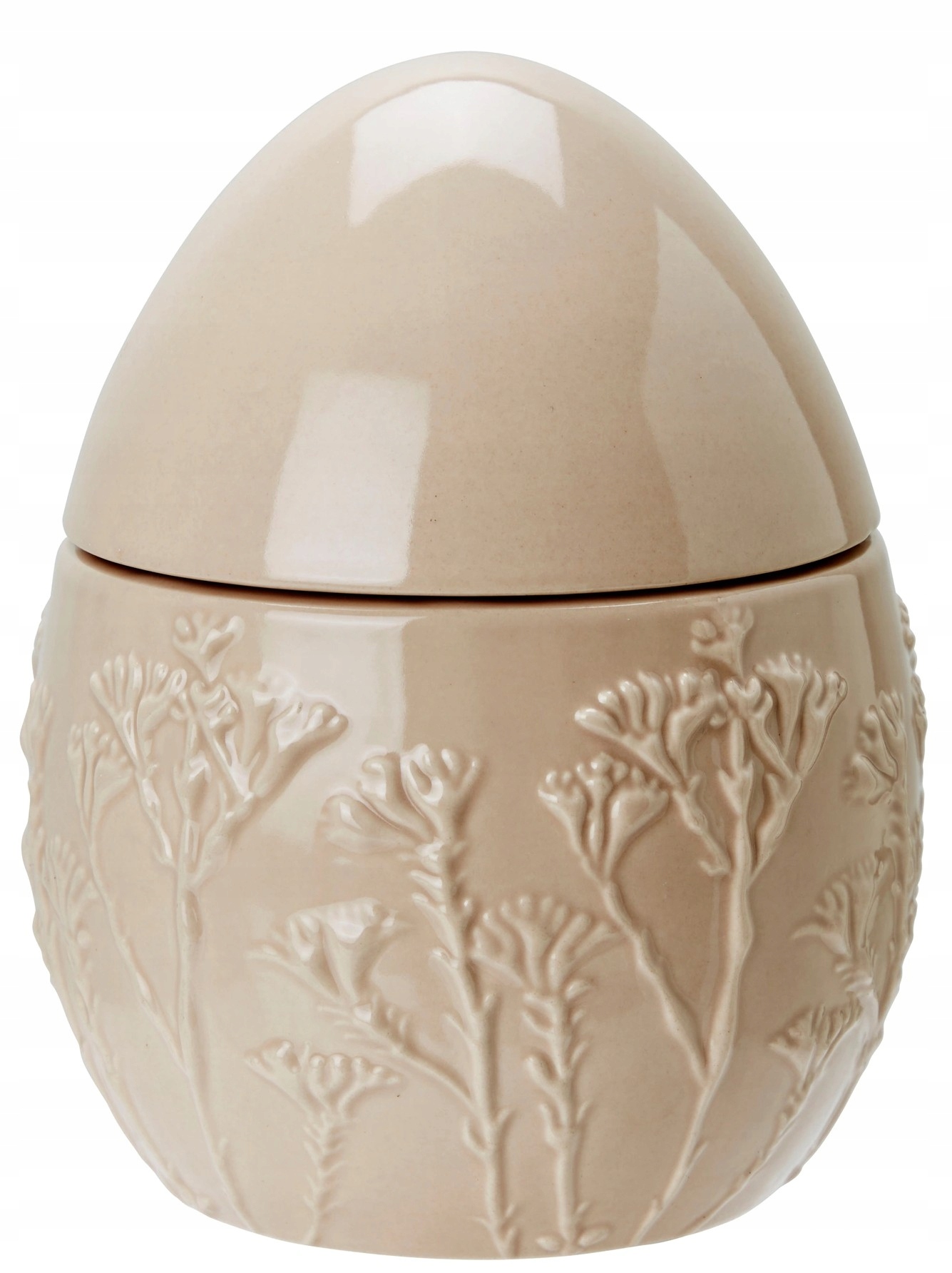 горщик/обкладинка, виготовлена з кераміки у відтінках бежевого у формі яйця з кришкою.