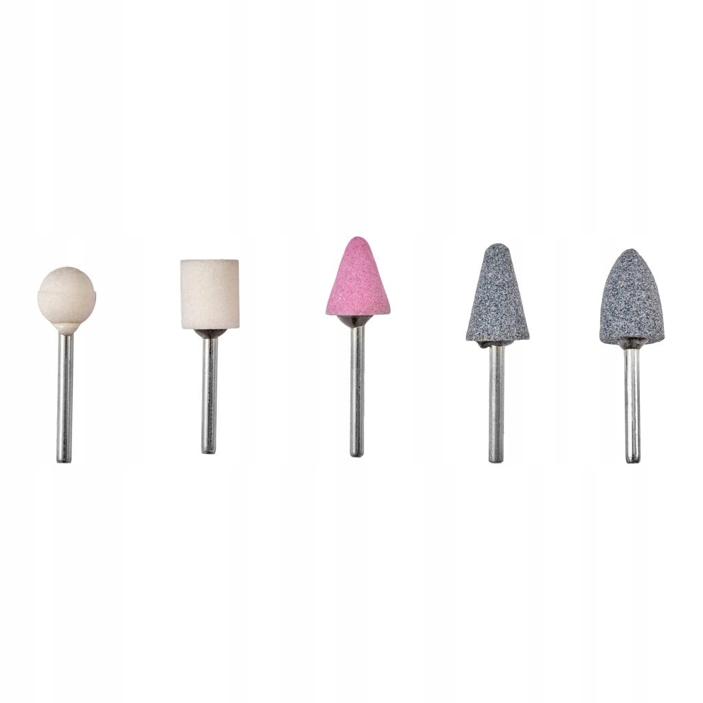 П'ять керамічних шліфувальних паличок для шліфувальних та гравірувальних машин. Вони бувають різноманітних форм, тому ідеально підходять для полірування та шліфування більшості матеріалів, таких як скло та метал. Мінімальна кількість обертів за хвилину: 15 000. Вал: Ø3,2 мм.