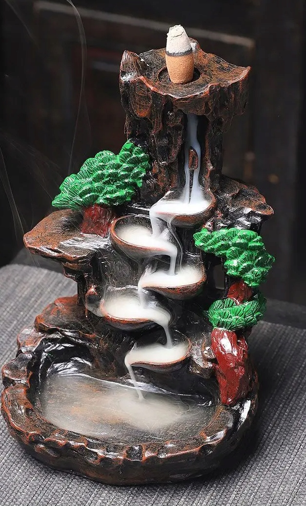 Ароматичні каміниЗворотній потік були спеціально розроблені таким чином, щоб дим від ароматичної палички каскадом спускався до контейнера на дні каміна. Дим від ароматичної палички оточує камін, як туман, і тече містичною рікою по жолобках і борозенкам каміна.