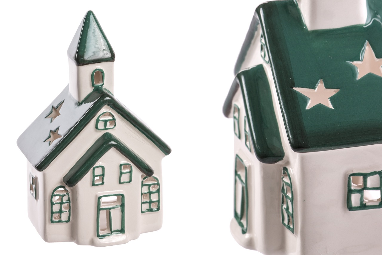 Білий керамічний будинок із зеленим дахом, ліхтар