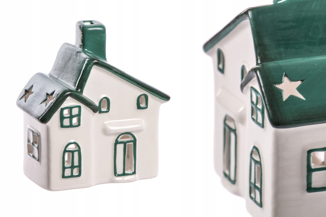 Білий керамічний будинок із зеленим дахом, ліхтар
